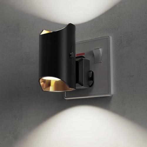 LEDSone Night Light Plug in Wall Sconce Non Dusk to Dawn Sensor Manual 22cm Black Shade Plug in Night and Day Light for Bedroom,Hallway,Kitchen, Stair