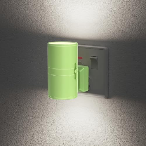 JandCase Night Light, Night Light Plug in Wall with Dusk to Dawn Sensor, Dimmable Nightlight 0-100LM, 6000K Cool White, Plug in Green Nightlight for Hallway, Bathroom, Bedroom