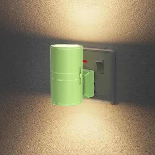 JandCase Night Light, Night Light Plug in Wall with Dusk to Dawn Sensor, Dimmable Nightlight 0-100LM, 3000K Warm White, Plug in Green Nightlight for Hallway, Bathroom, Bedroom