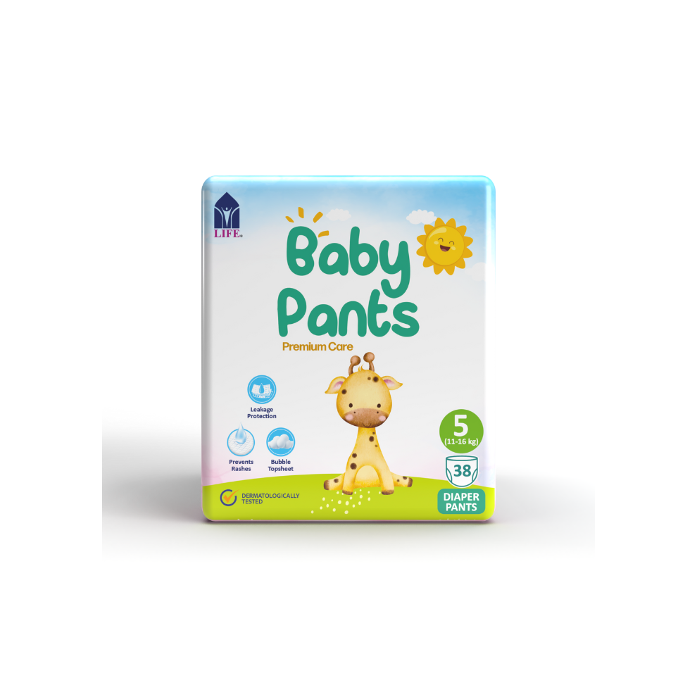 Life Baby Diaper Pants Size 5 Extra Large (11-16kg) 38's Easy-to-Wear, Soft & Absorbent Pull-Up Nappies for Day & Night Protection