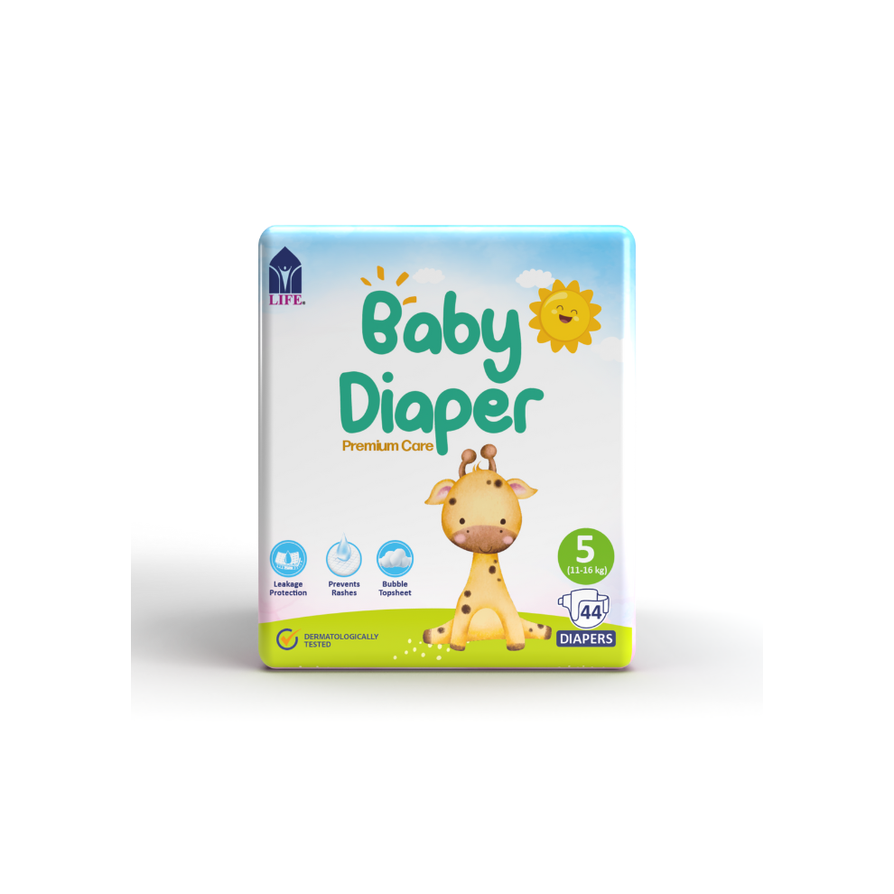 Life Baby Diapers Size 5 Extra Large (11-16kg) 44's Soft, Absorbent & Comfortable Baby Nappies for Day & Night Protection