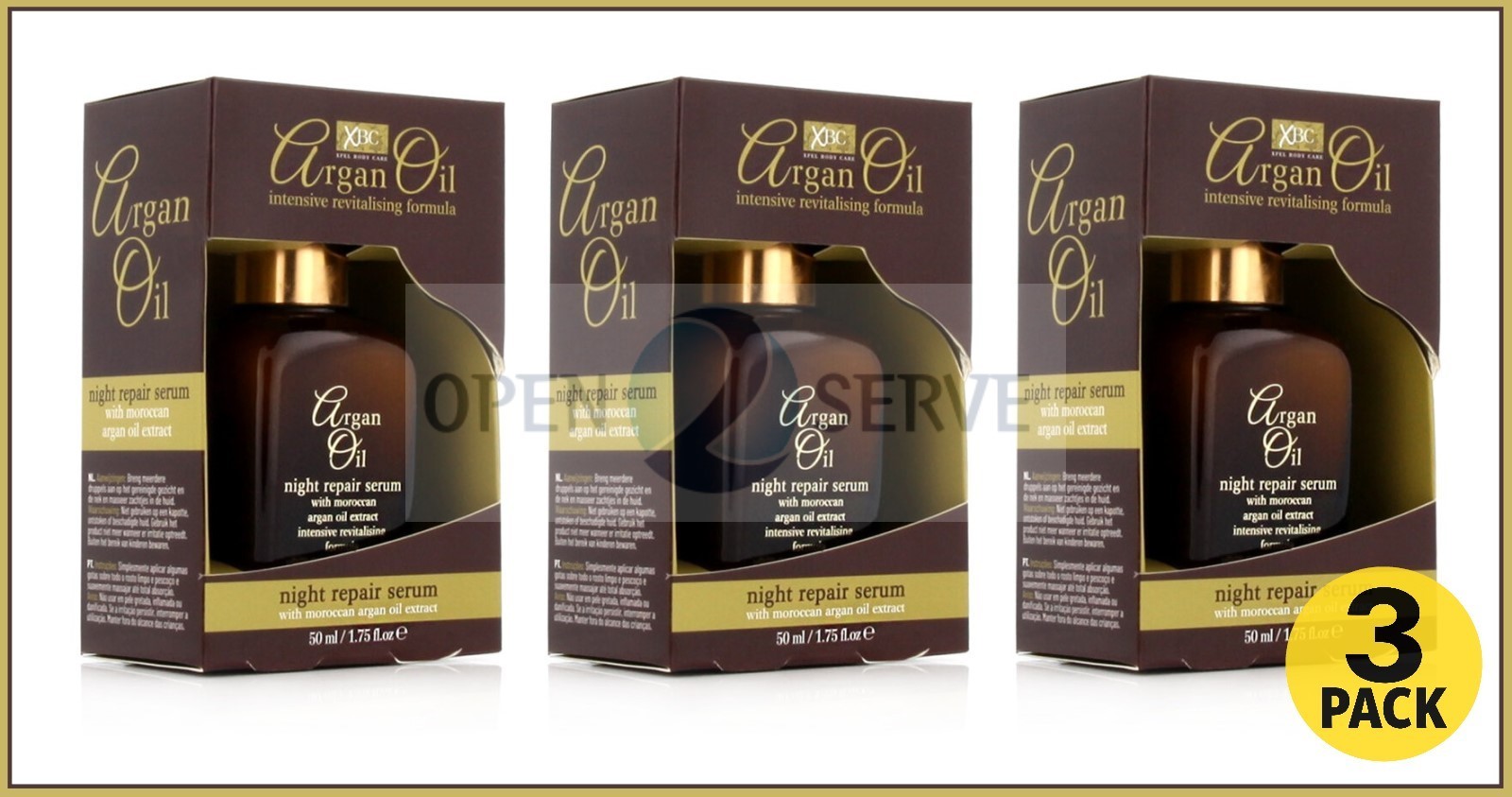 3x XBC Argan Oil Bottle Night Repair Serum Moroccan Argan Oil-Face | Neck - 50ml