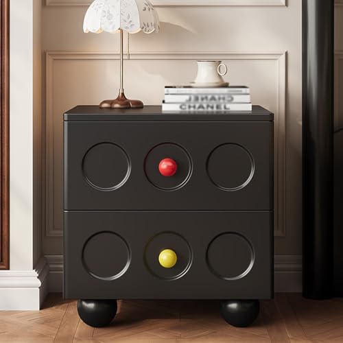 XDAWQP Bedroom Nightstand Wood Pure Color Nightstand Home Bedroom Bedside Table Simple Small Storage Cabinet Double-Drawer Bedside Furniture Storage Night Stand for Bedroom Bed Side Tables,Black
