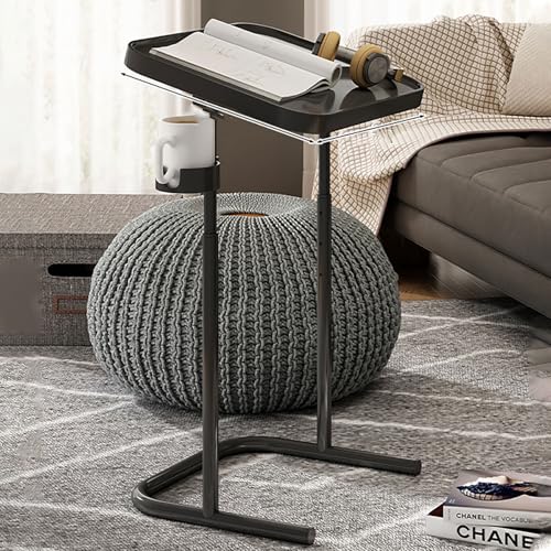 Fiauli C Shaped Table End Table, Adjustable Height Skinny Side Tables, 360 Degree Swivel TV Tray Desk, Night Stand with 2-Tier Storage Shelf, Reversible Couch, Drink,Snack Desk Black