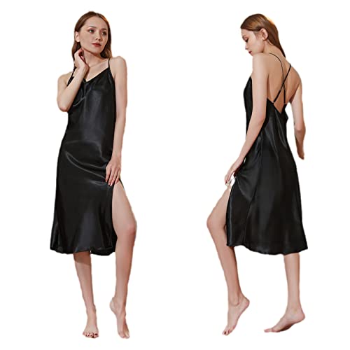 Women'S Nightdresses Satin Nightshirts Sexy Nightdress Spaghetti Strap Nightgown Sling Deep V Neck Summer Lingerie Pajama Robe Loungewear Simple Nightie