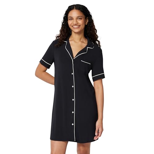 Amazon Essentials Women's Modal-Blend Nightgown, Short Sleeve Button-Down, Black, X-Small