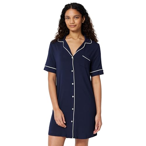 Amazon Essentials Women's Modal-Blend Nightgown, Short Sleeve Button-Down, Navy, X-Small