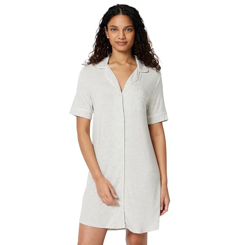 Amazon Essentials Women's Modal-Blend Nightgown, Short Sleeve Button-Down, Light Grey Heather, X-Large