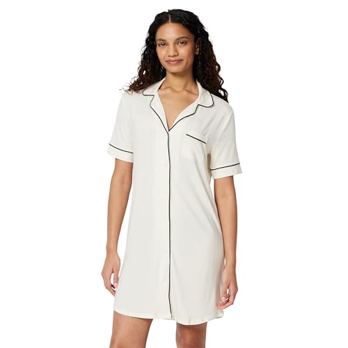 Amazon Essentials Women's Modal-Blend Nightgown, Short Sleeve Button-Down, Ivory, X-Small