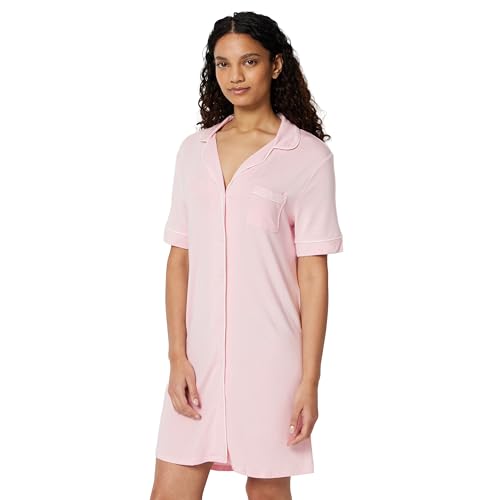Amazon Essentials Women's Modal-Blend Nightgown, Short Sleeve Button-Down, Pink, X-Small