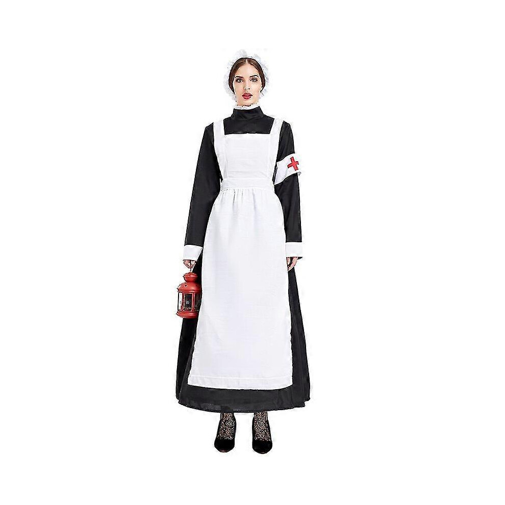 (S) Florence Nightingale Cosplay Costume Nurse Dress with Apron Bonnet Arm Band Women's Civil War Nurse Costume
