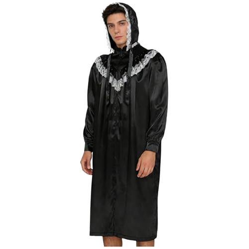 Choomomo Adult Victorian Nightgown for Men Nightshirt with Sleeping Cap Casual Kaftan Thobe Night Shirt Black XL