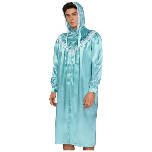 Choomomo Adult Victorian Nightgown for Men Nightshirt with Sleeping Cap Casual Kaftan Thobe Night Shirt Blue XL