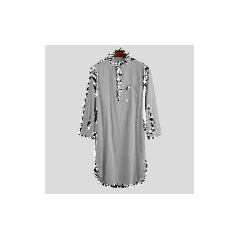 (gray, L) Cotton Muslim Sleepwear: Soft One-piece Nightshirt For Men, Long Plain Pajama Gown Hk