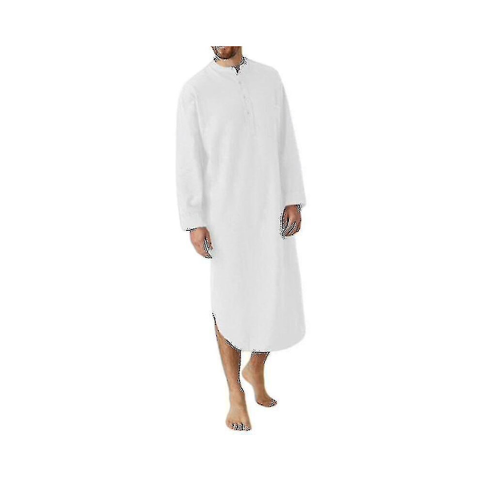 (white, 4XL) Cotton Muslim Sleepwear: Soft One-piece Nightshirt For Men, Long Plain Pajama Gown Hk