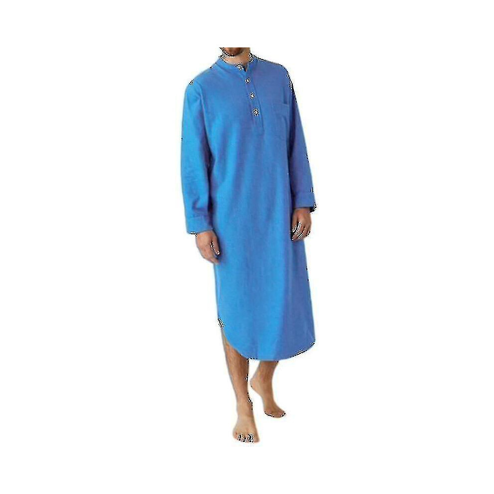 (blue, L) Cotton Muslim Sleepwear: Soft One-piece Nightshirt For Men, Long Plain Pajama Gown Hk