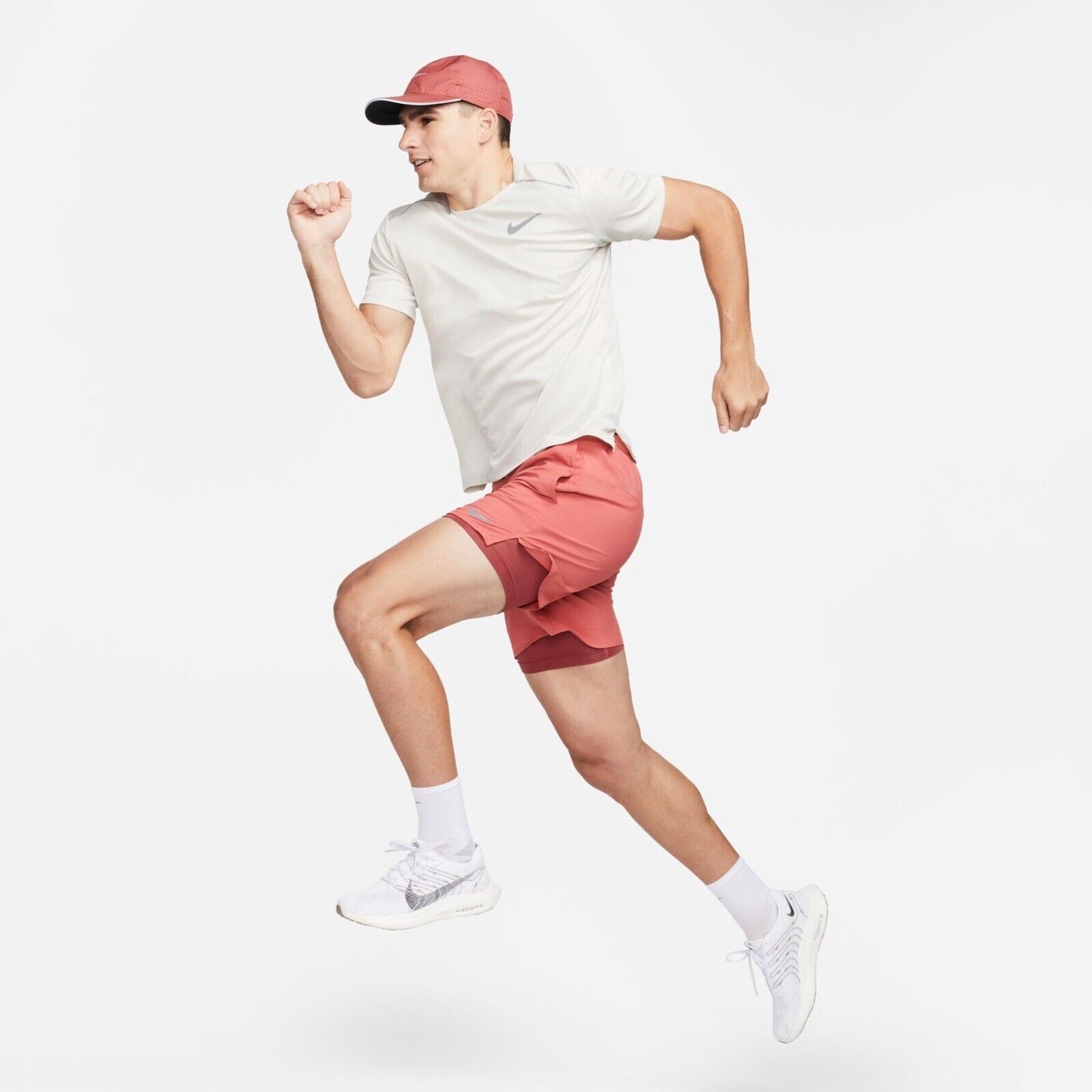 Mens Nike Stride 7” 2 In 1 Brief Lined Running Shorts Stardust Red Size Small