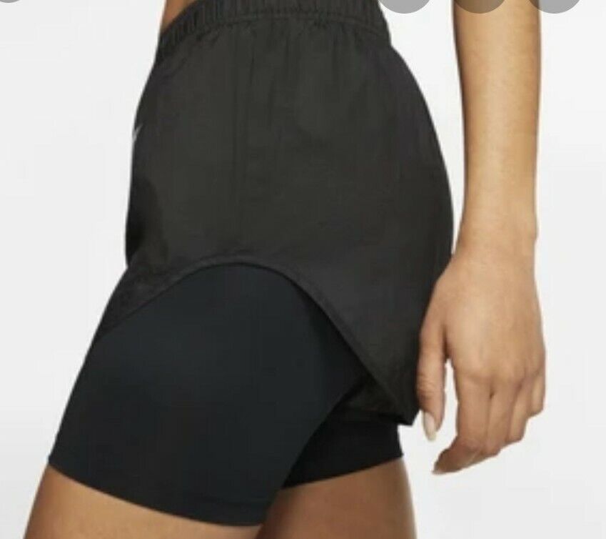 WOMENS NIKE AIR 2in1 RUNNING SHORTS SIZE XS (CJ3466 010) BLACK
