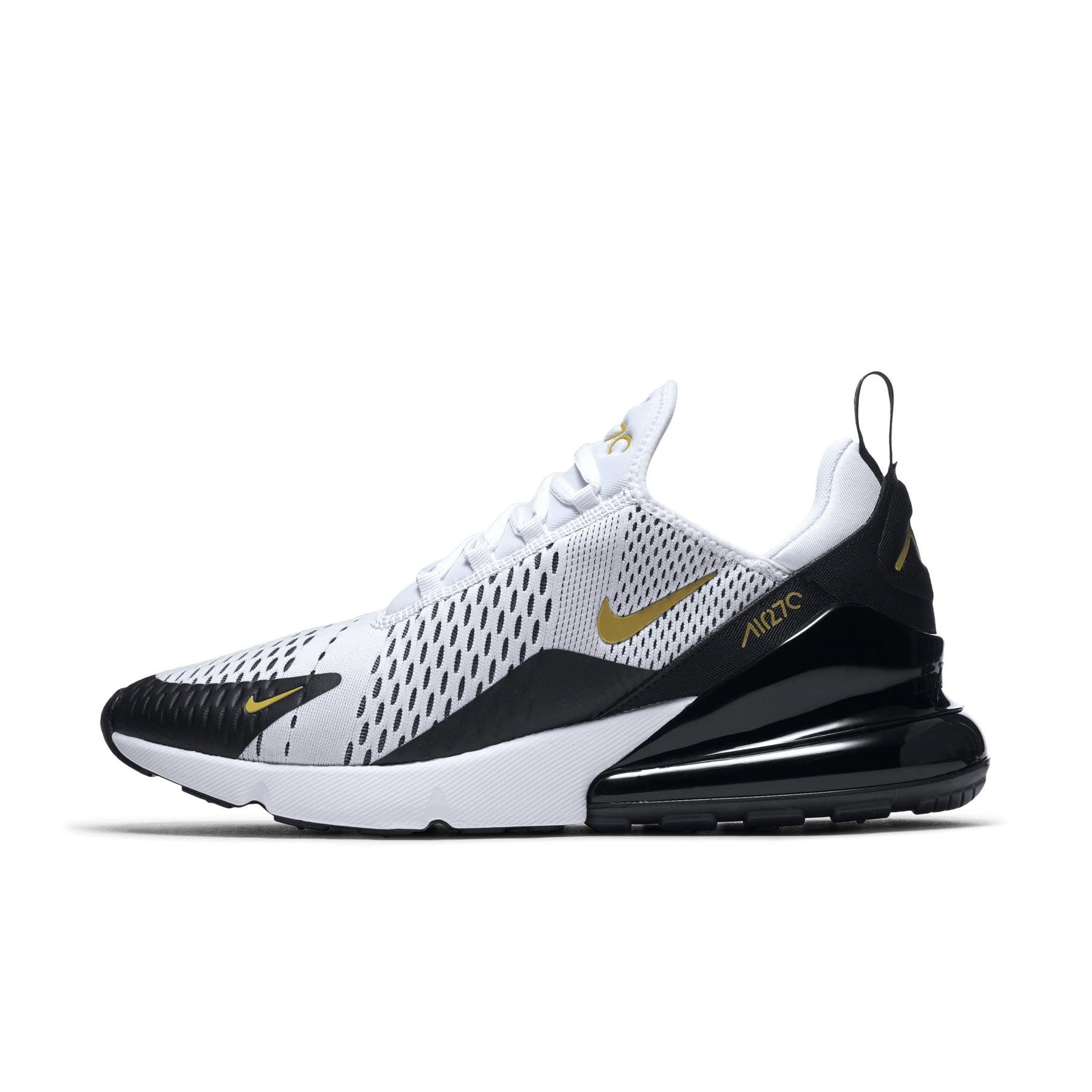 Nike Unisex Air Max 270 Trainers in White/Metallic Gold/Black Textile - Size UK 6