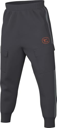 NIKE Air Men's Fleece Cargo Trousers, Anthracite/Safety Orange, HM0180-061, S
