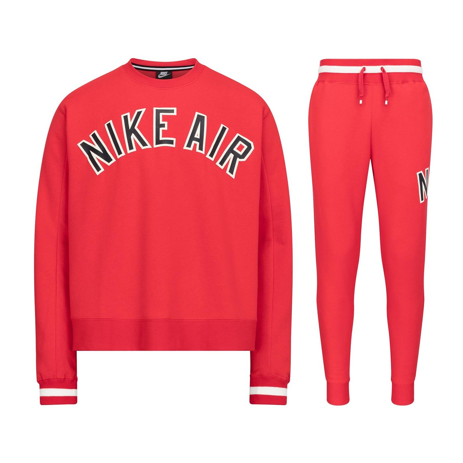 Nike Air Mens Cotton Fleece Crew Neck Pullover Tracksuit Set Red