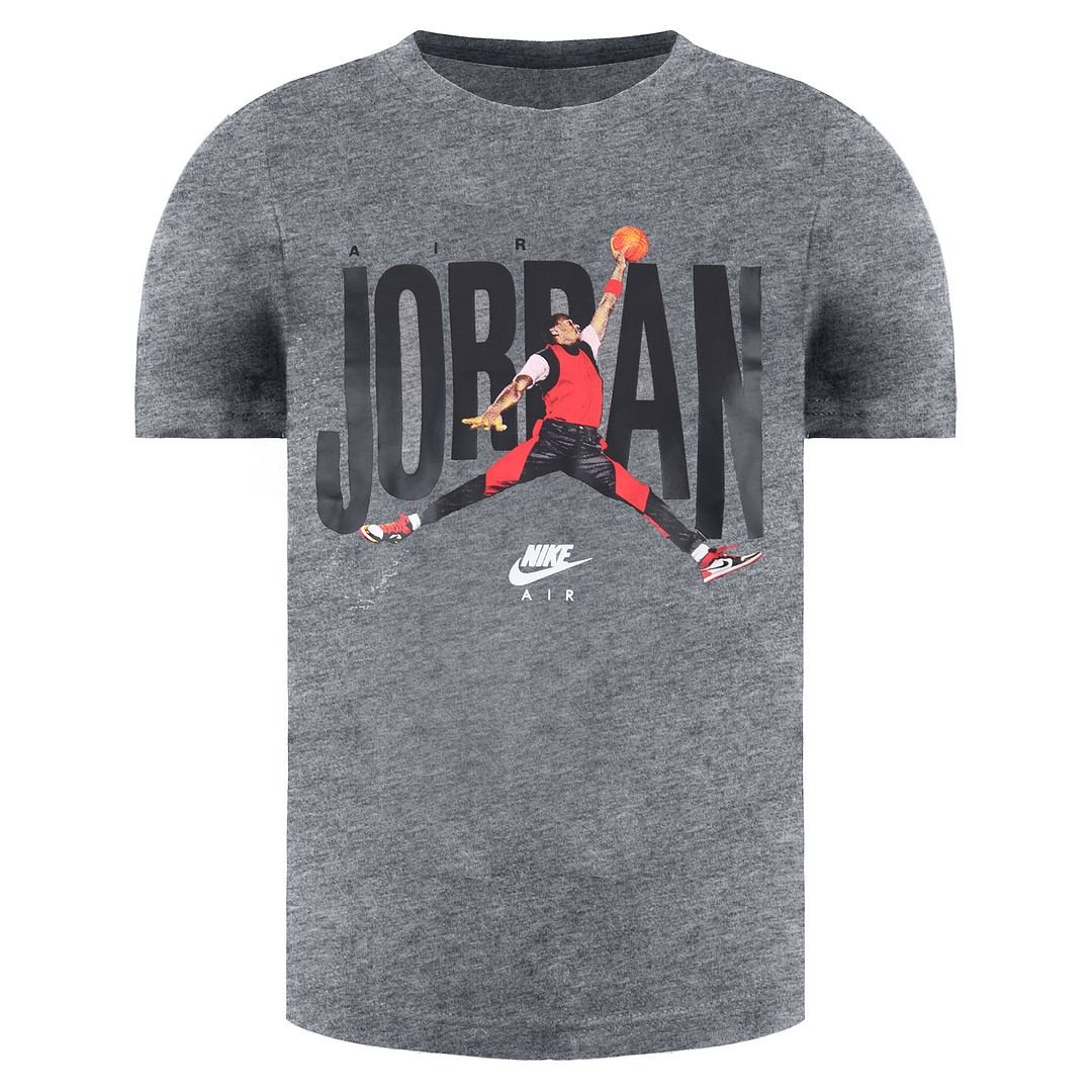 Nike Childrens Unisex Air Jordan Graphic Logo Short Sleeve Crew Neck Grey Kids T-Shirt CZ3713 091 Cotton - Size 6-7Y