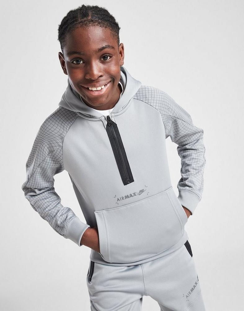 NIKE AIR MAX 1/2 ZIP FLEECE HOODIE OLDER KIDS SIZE L (DD9242 073) GREY