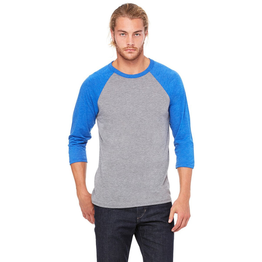 Bella Canvas Unisex 3/4-Sleeve Baseball T-Shirt L Grey/TR RYL TRB