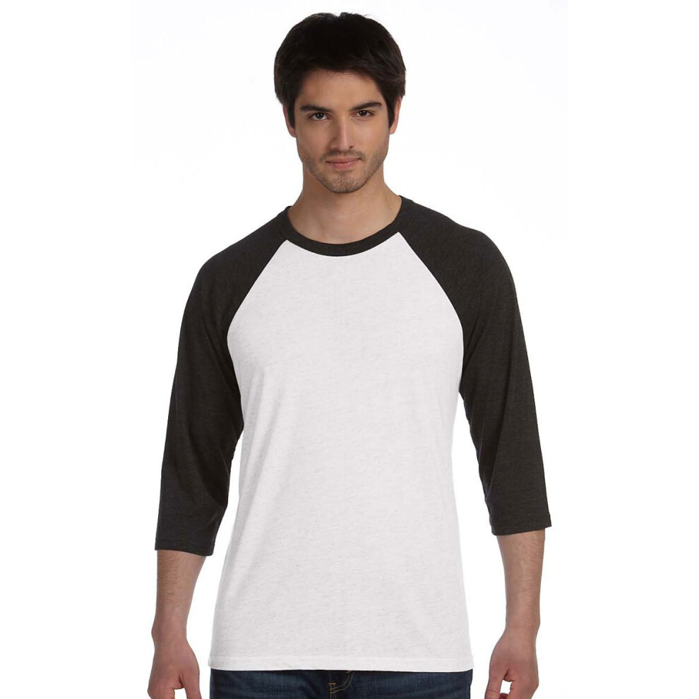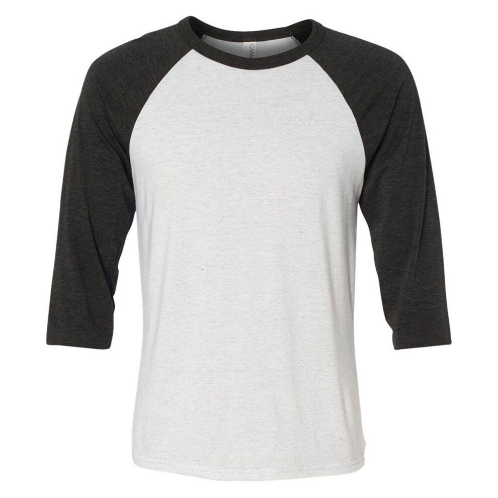 Bella Canvas Unisex 3/4-Sleeve Baseball T-Shirt XS WHT FLCK/CHR TR