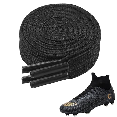 CCSOFTIME 2 Pairs Flat Football Boot Laces,4mm Thin Black Trainers Laces for Nike,Shoelaces Replacement for Rugby Boots,High Low Top Soccer Cleats Trainers,Black-140cm