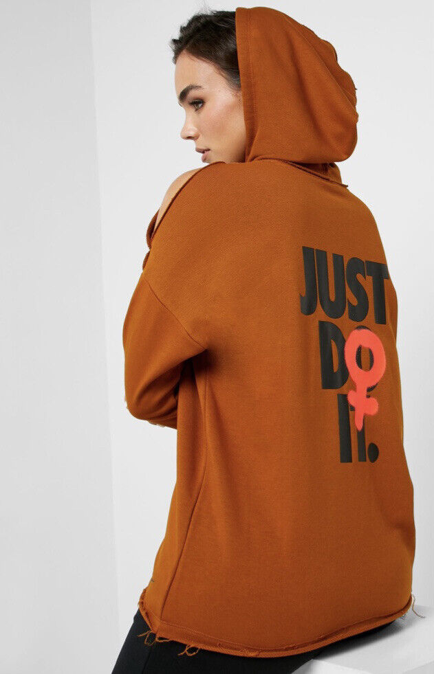 NIKE GOOD VIBES POPOVER BROWN HOODIE PULLOVER SWEATSHIRT COTTON RELAXED