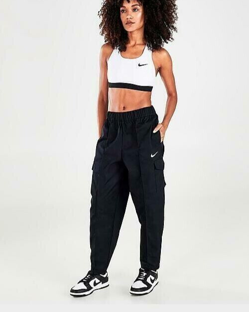 WOMENS NIKE ESSENTIAL CURVE WOVEN CARGO Loose Fit PANTS SIZE S (DD5983 010)BLACK