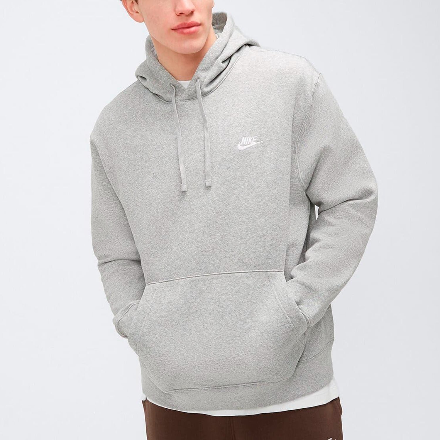 NIKE CZ7857-063 M NSW CLUB HOODIE PO FT Sweatshirt Men's DK GREY HEATHER/MATTE SILVER/WHITE Size L