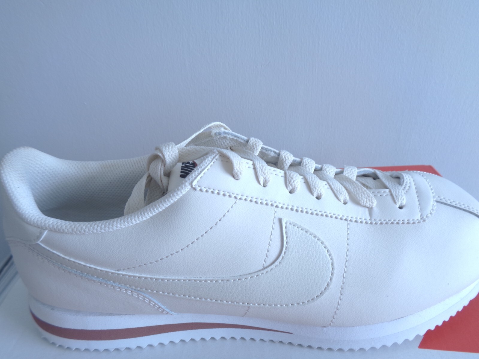 NIKE Women's Cortez Leather Sneaker, Phantom Light Bone White Red Sepia, 7 UK