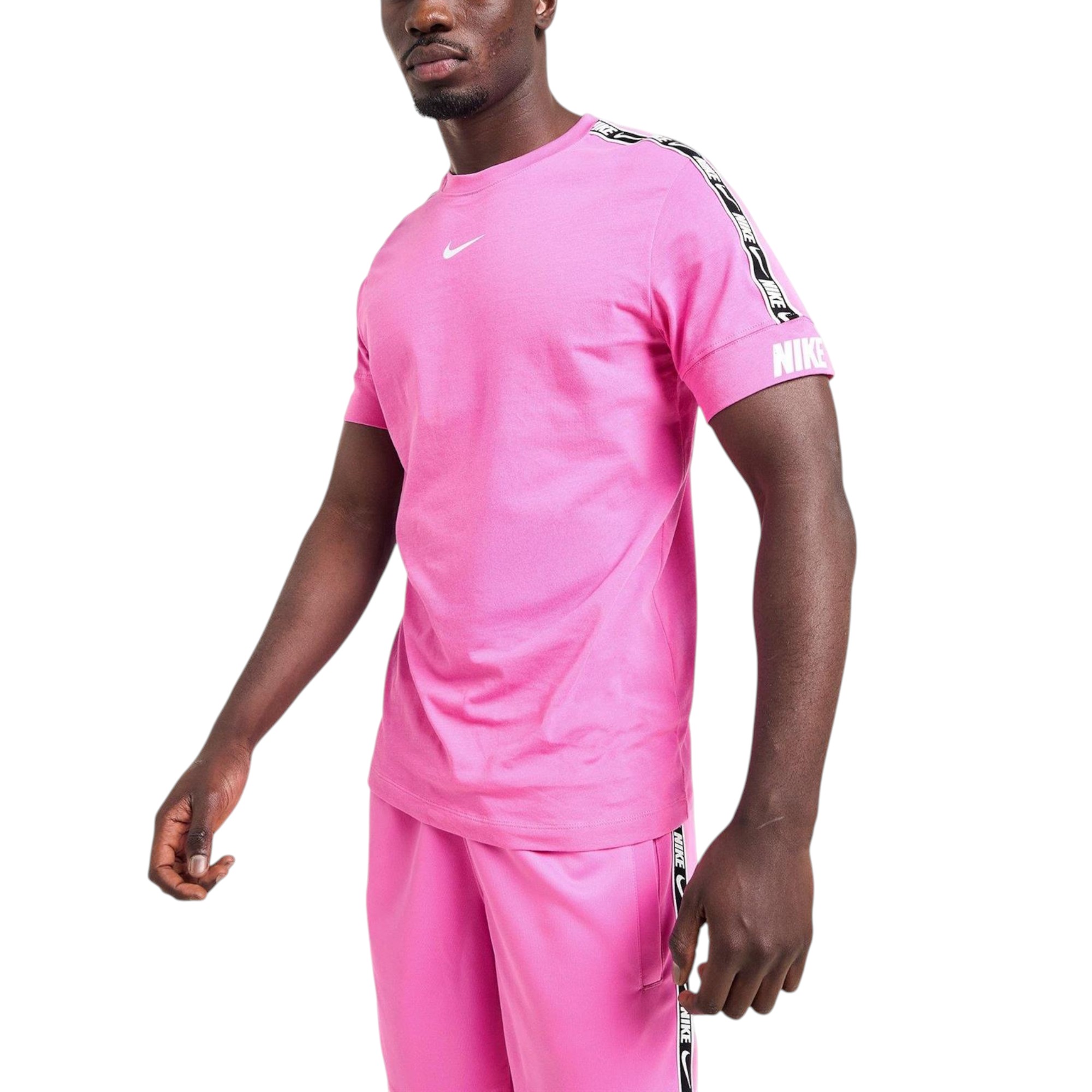 Nike Mens T Shirts Tape Set NSW Repeat Fleece Cotton Sportswear - Pink - Size Small