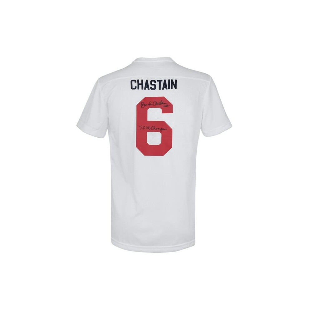 Schwartz Sports Memorabilia CHAJRY510 Brandi Chastain Signed Nike White Dri-Fit Soccer Jersey with 2x WC Champions
