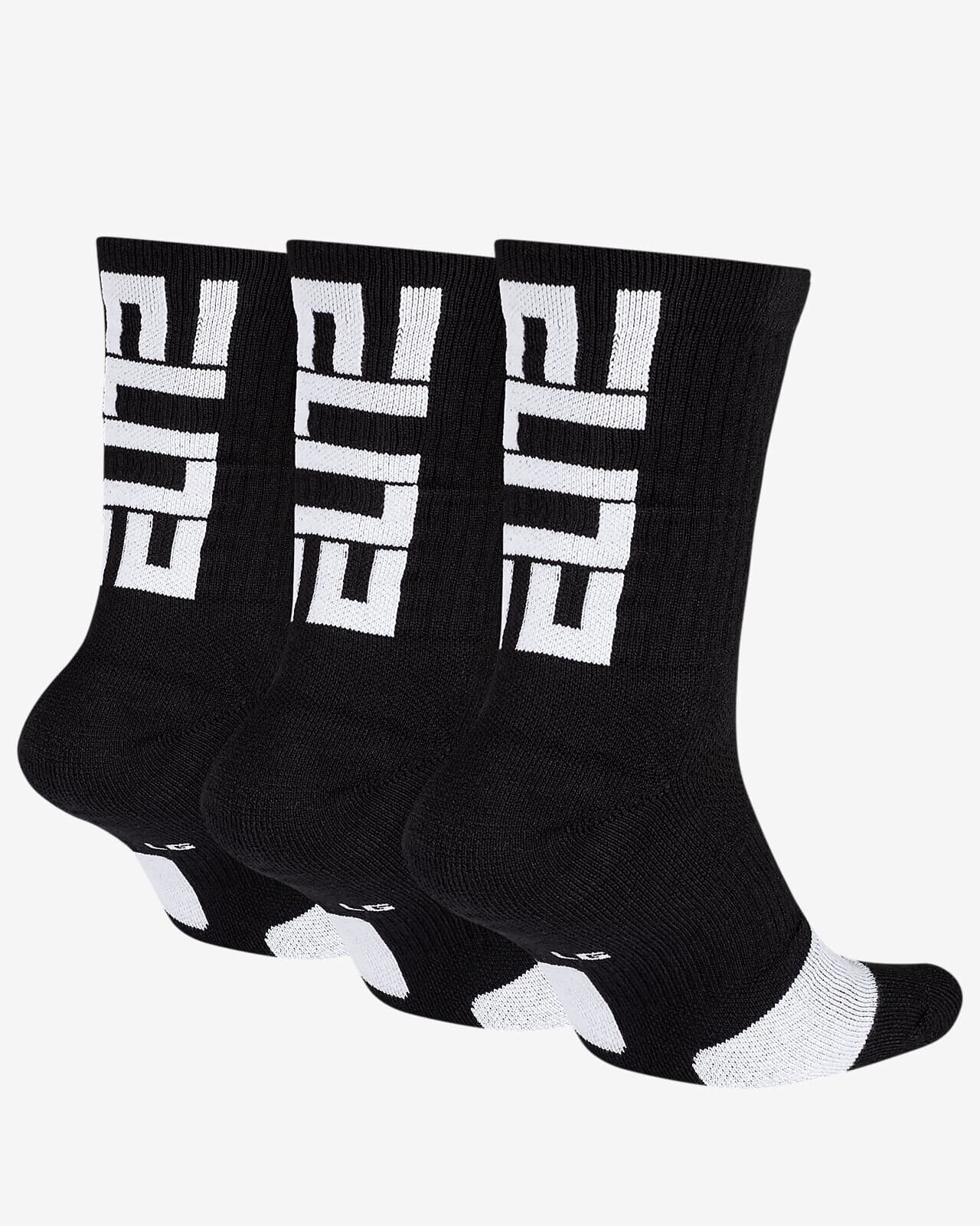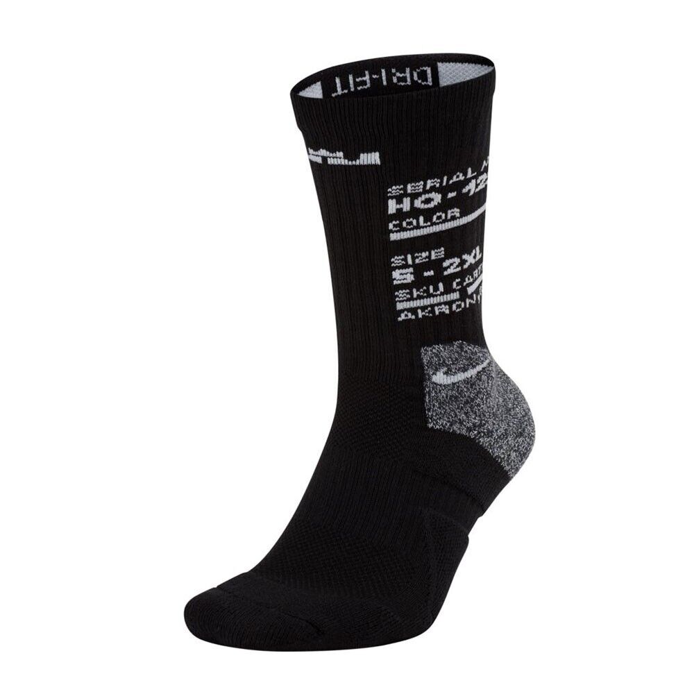 Nike Elite Lebron Crew Basketball Socks Sz UK 8 - 11 EUR 42 - 46 Black White