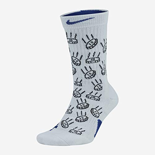 NIKE Men U Nk Elite Crew - GFX 2 Socks - White/Black/Deep Royal Blue, Small