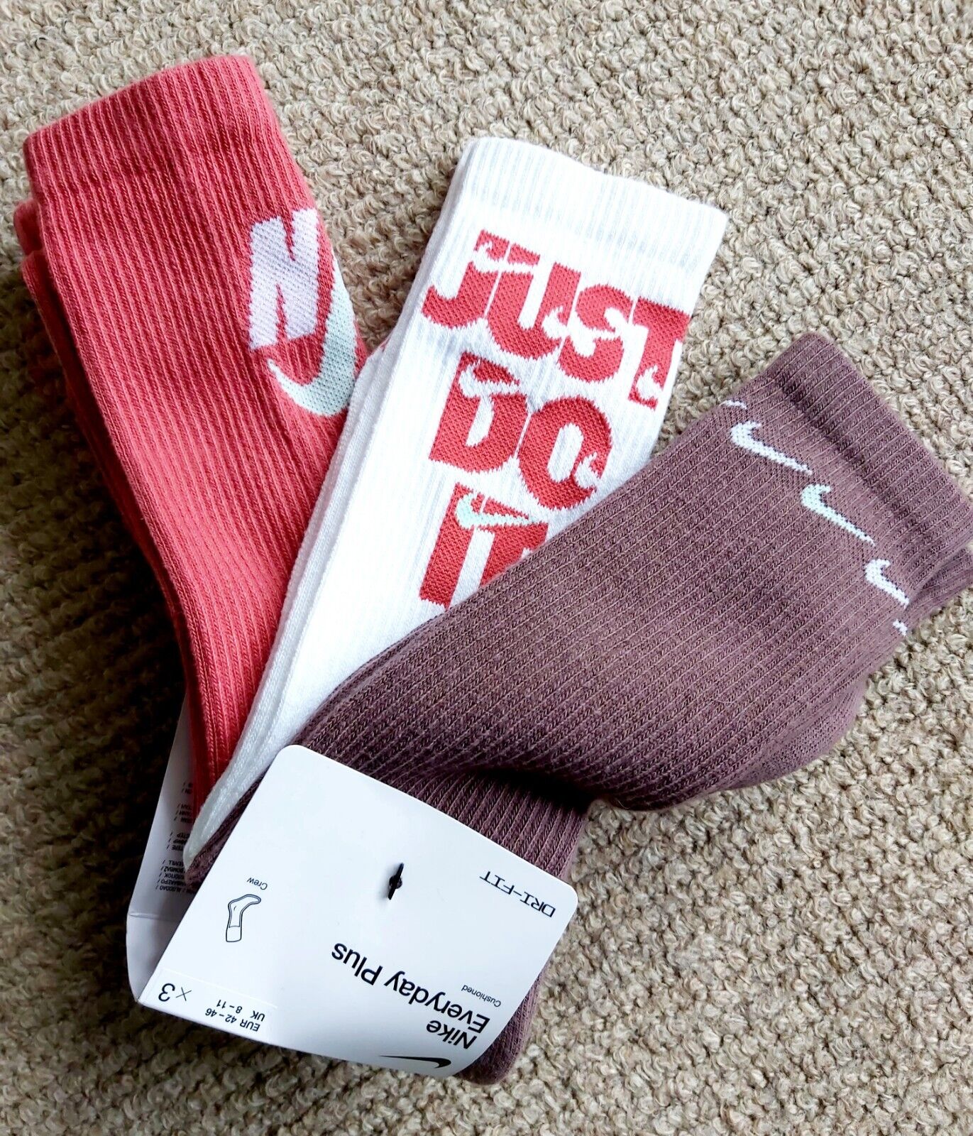 3 Pairs NIKE White Brick Red Everyday Plus CUSHIONED CREW SOCKS 8-11 42-46 nike5