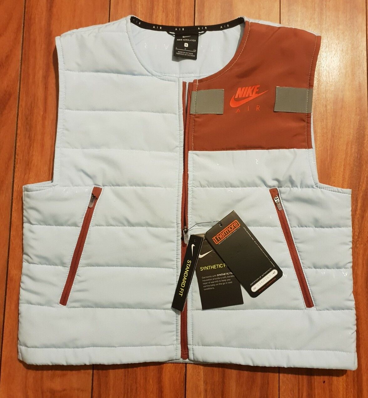 Women's Nike Air Running Gilet Vest Sz S Sky Blue Brown Red CU3098 407