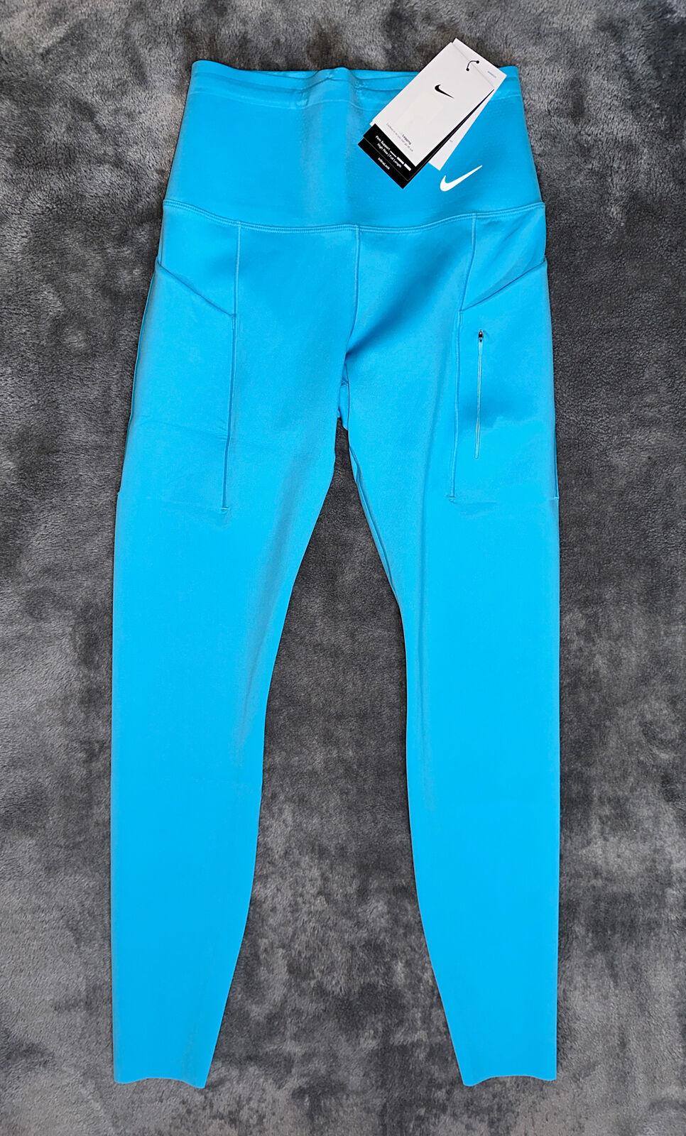 Women's Nike GoFirm-Support High-Waisted Leggings Pockets Sz S Noise Aqua/Black