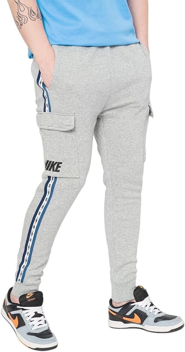 NIKE Men's Grey & Blue Sportswear Fleece Logo Cargo Joggers XXL 2XL BNWT