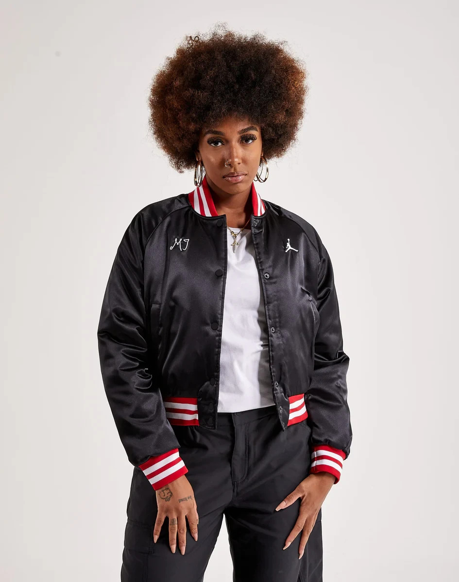 NIKE JORDAN VARSITY BOMBER JACKET WOMENS SIZE L (FB5152 010) BLACK