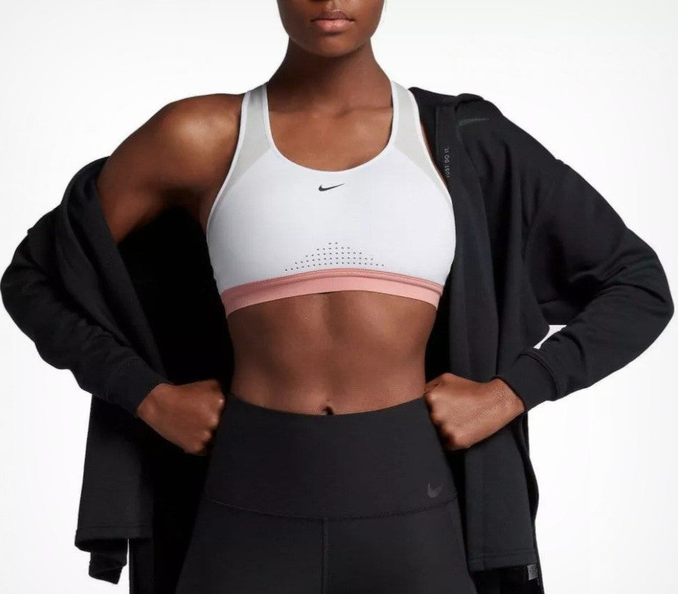 NIKE MOTION ADAPT SUPPORT SPORTS BRA SIZE S (888575 100) WHITE / PINK