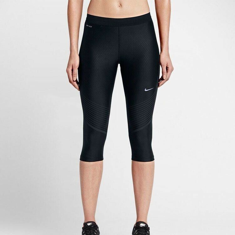 Womens Nike Power Speed Capri 3/4 Compression Running Tights Sz XL Black New