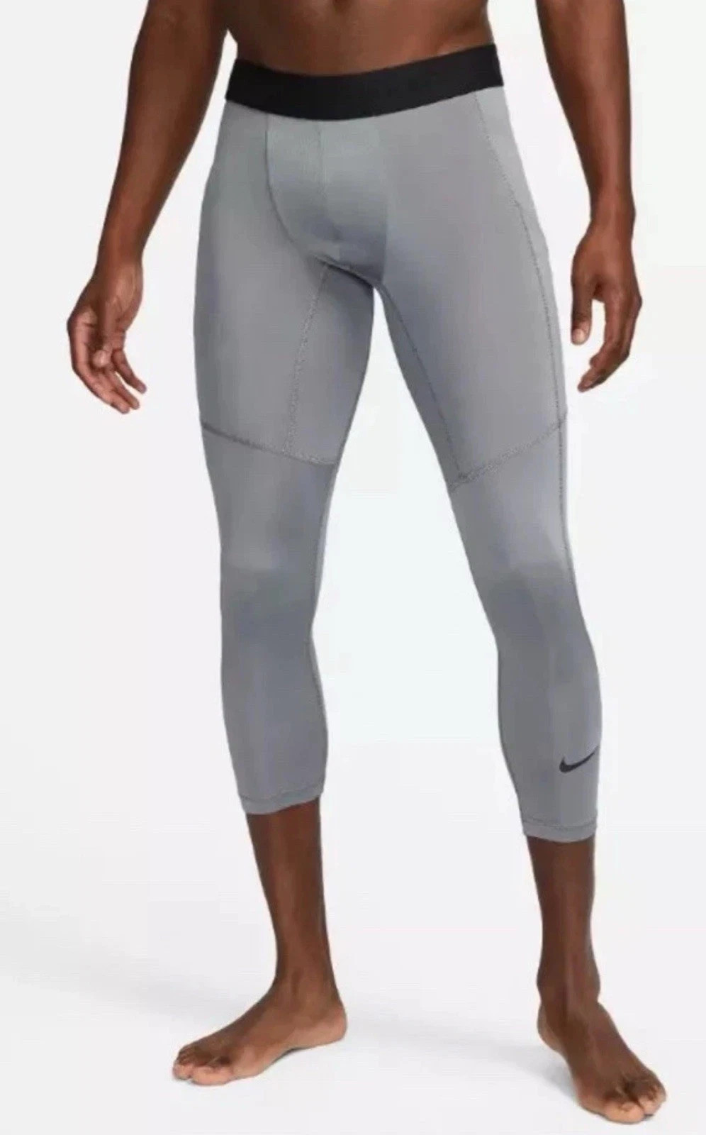 Nike Pro Mens 3/4 Length Fitness Training Tights Grey FB7950-084 Size LARGE