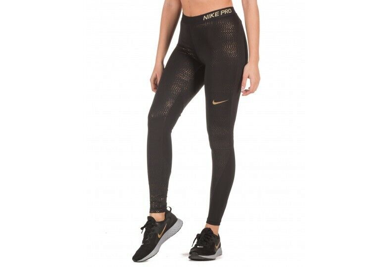 Womens Nike Pro Sparkle Gold Training Tights Sz XS Black Metallic Gold 932397 01