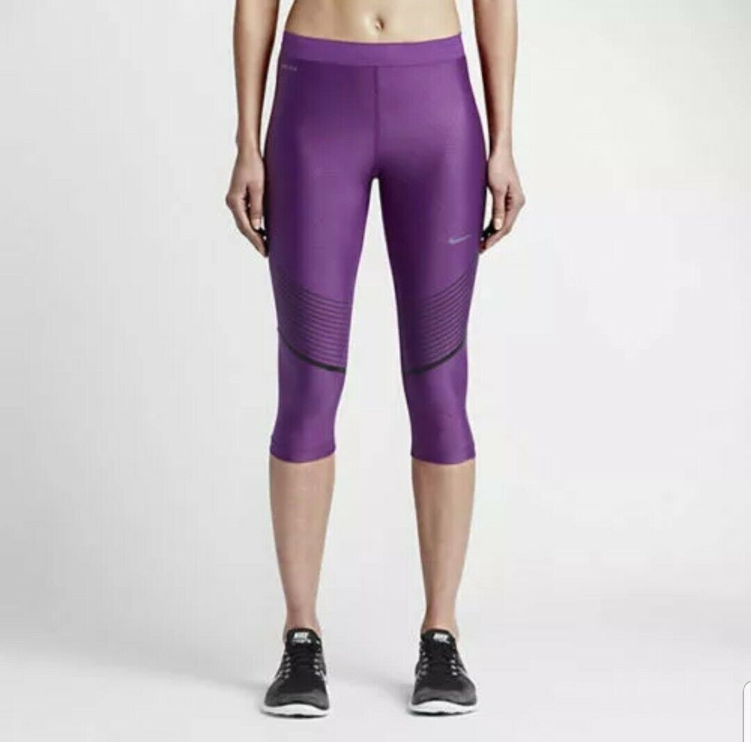 Womens Nike Power Speed Capri 3/4 Compression Running Tights Sz S Purple