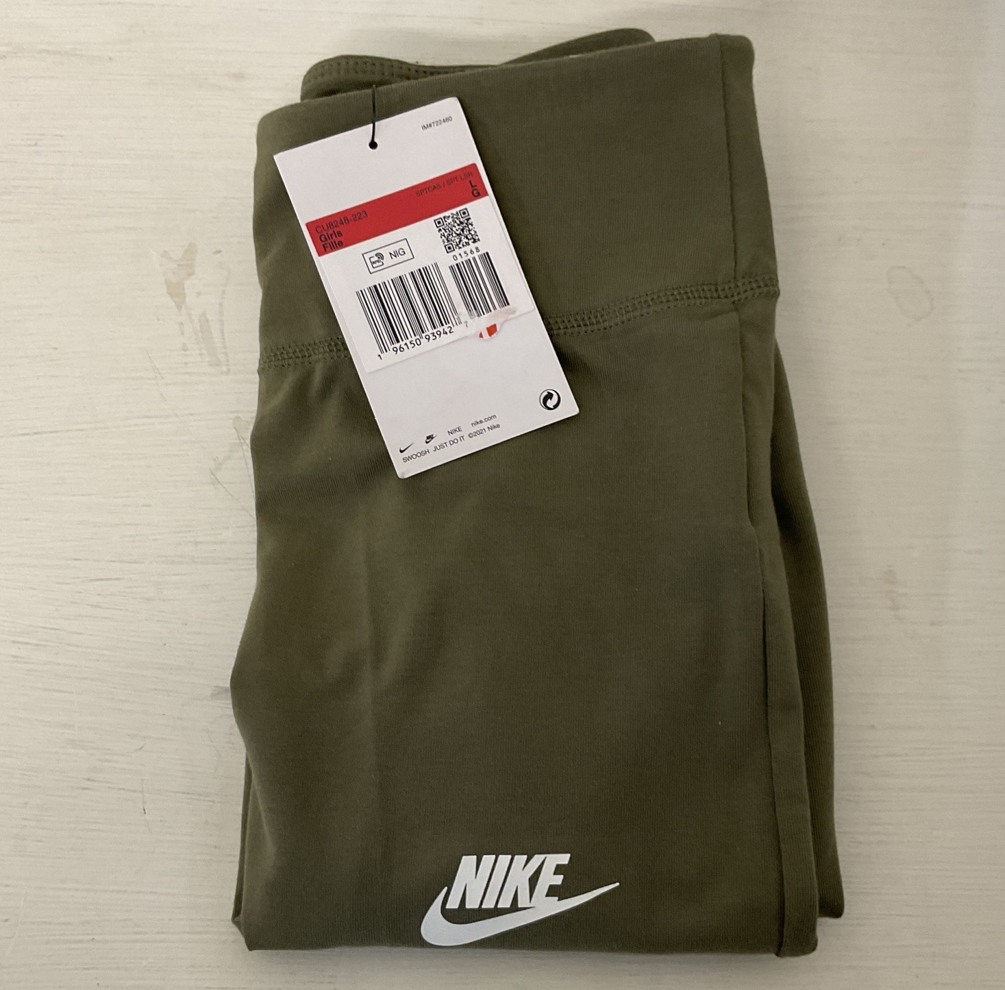 Nike Girls Tight Fit High Rise Full Length Leggings Green Large BNWT