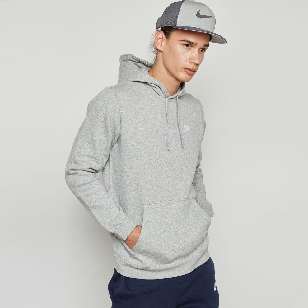 (Grey, M) Nike Mens Club Fleece Pullover Hoodie